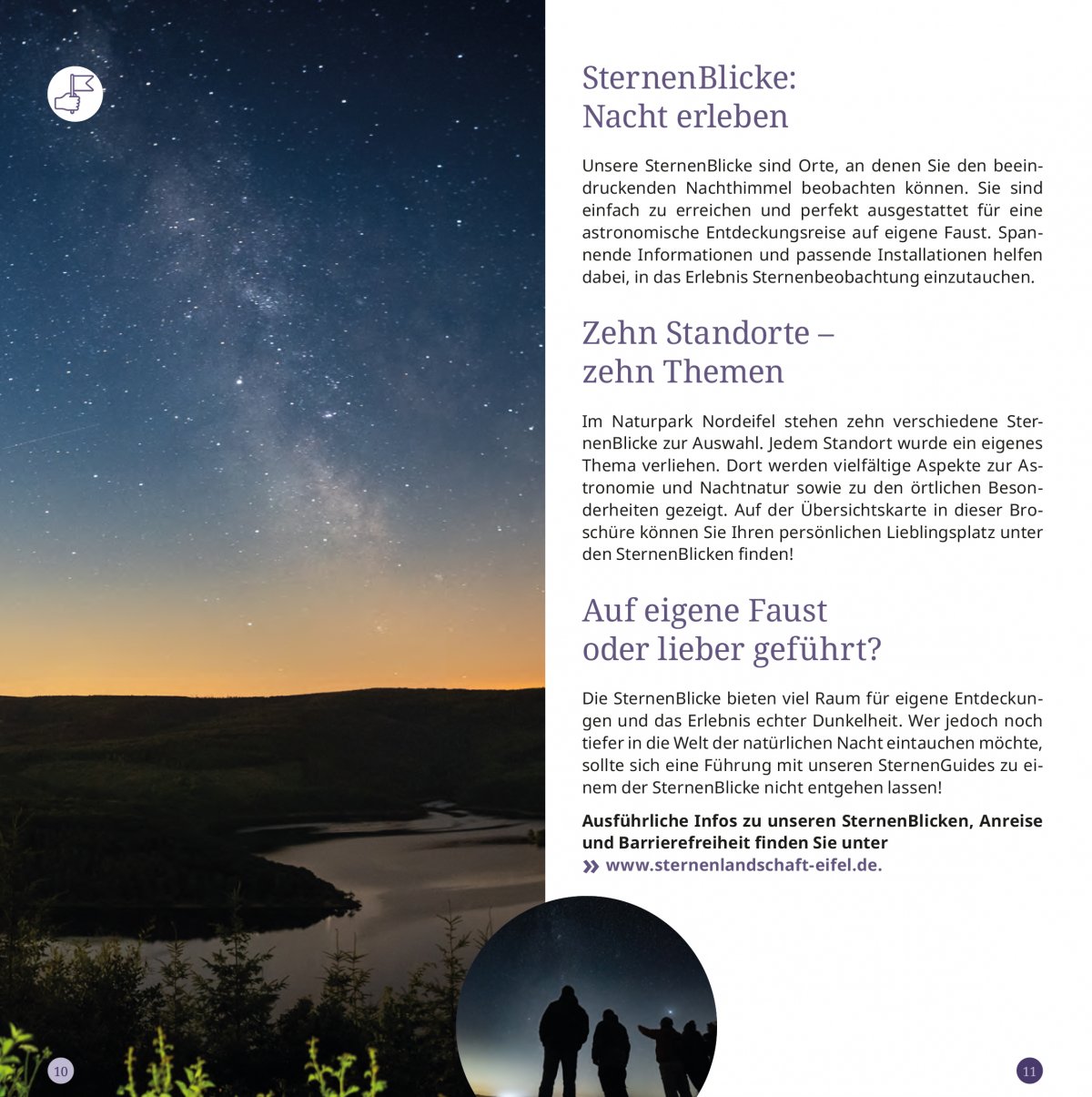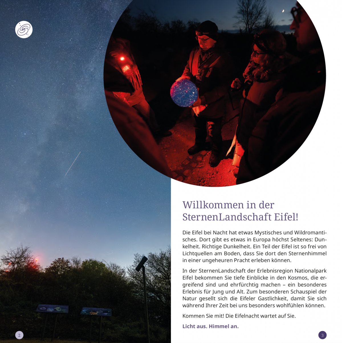 Die SternenLandschaft der Erlebnisregion Nationalpark Eifel bietet tiefe Einblicke in den Kosmos, die ergreifend sind und ehrfürchtig machen – ein besonderes Erlebnis für Jung und Alt. Wie dies konkret aussieht und wie Interessierte die SternenLandschaft Eifel am besten erkunden können, verrät die Broschüre, für die ich gemeinsam mit meiner Kollegin Anne Ameling die Texte verfasst habe. Wer also mehr zu individuellen Sternenerlebnissen sowie zu Sternenführungen, Guides und Sternengastgebern erfahren möchte, findet hier alle Angebote und Aktivitäten auf einen Blick.