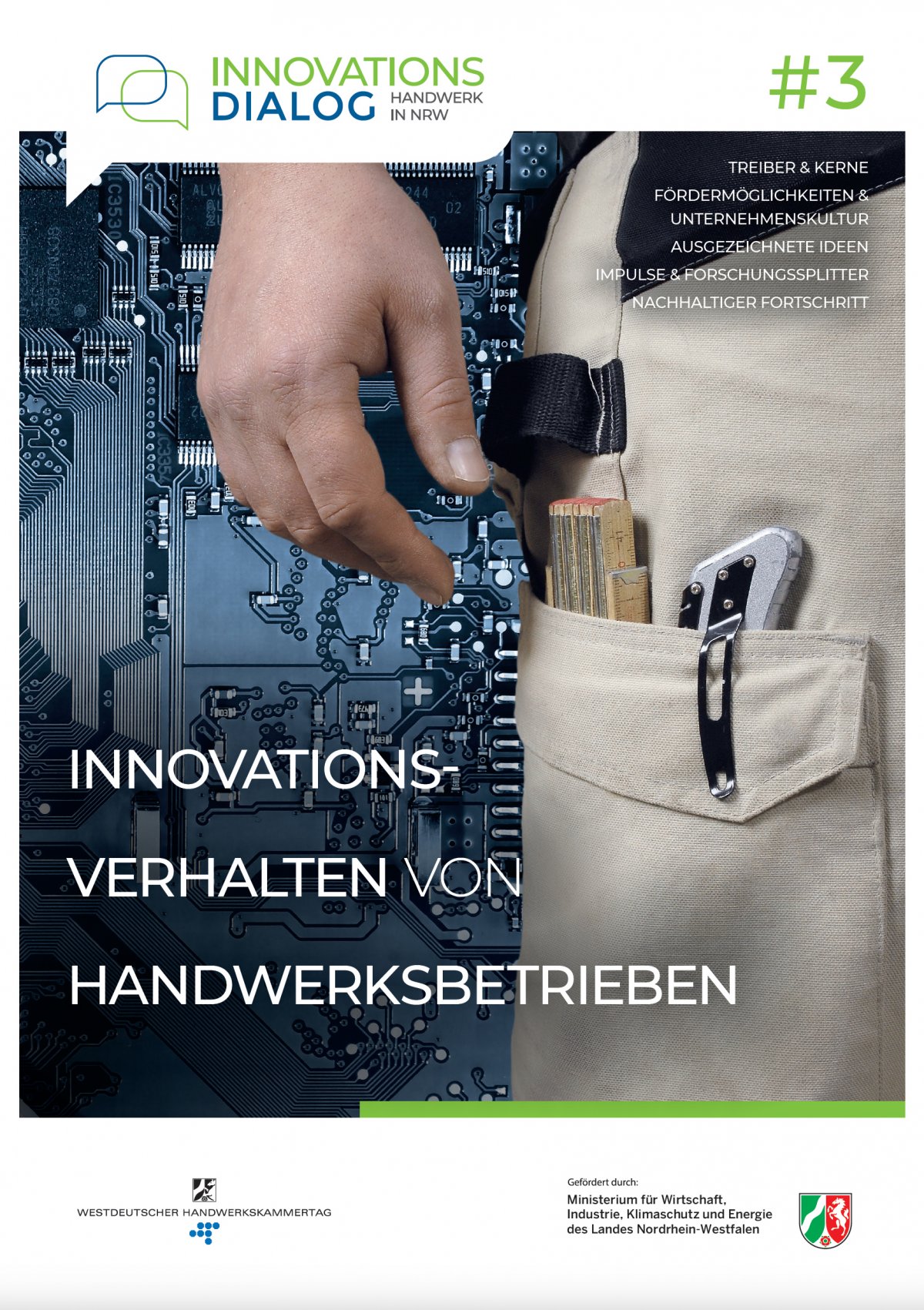 Von August bis Dezember 2023 erarbeitete ich in enger Abstimmung mit dem Westdeutschen Handwerkskammertag (WHKT) und in einer Bietergemeinschaft mit der Journalistin Anne Ameling verschiedene Beiträge für eine Broschürenreihe zum Innovationsdialog Handwerk in NRW. Diese widmen sich zukunftsweisenden Themen wie Digitalisierung, Nachhaltigkeit, Fachkräftesicherung und Innovationsverhalten im Handwerk. Sie machen deutlich, welche Herausforderungen der Wandel von Umwelt, Gesellschaft und Arbeitswelt für das Betriebe mit sich bringt und welche Chancen er zugleich bietet. Neben Hintergrundartikeln und Interviews mit Expertinnen und Experten bieten die Broschüren zahlreiche Best-Practice-Beispiele sowie Impulse und Forschungssplitter zu den jeweiligen Themen.